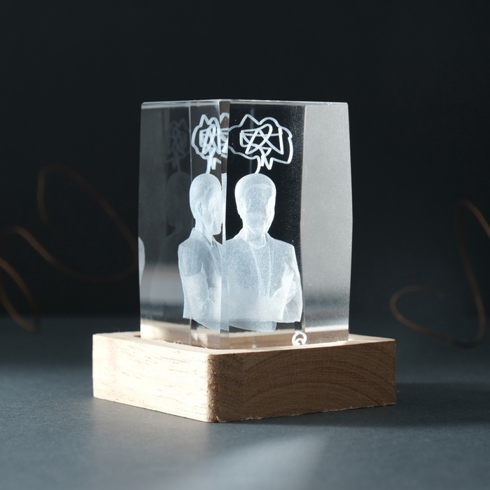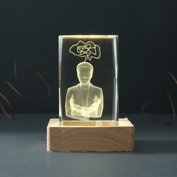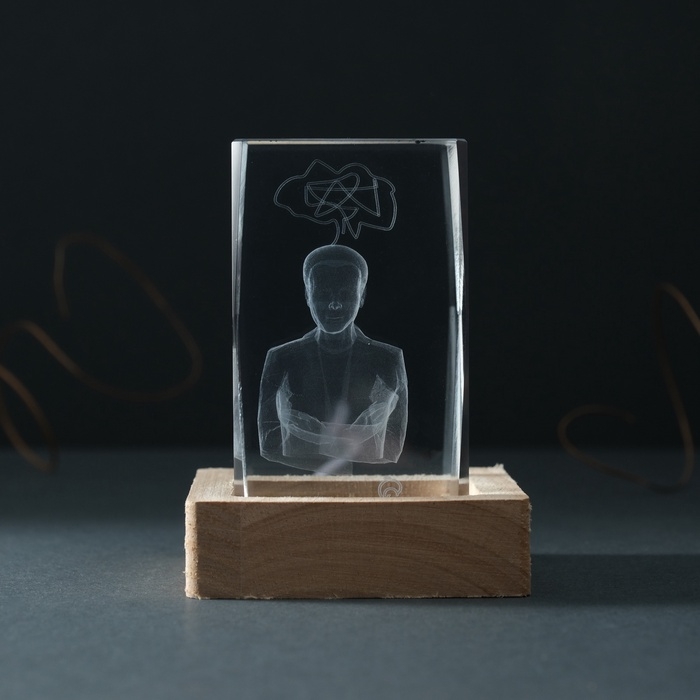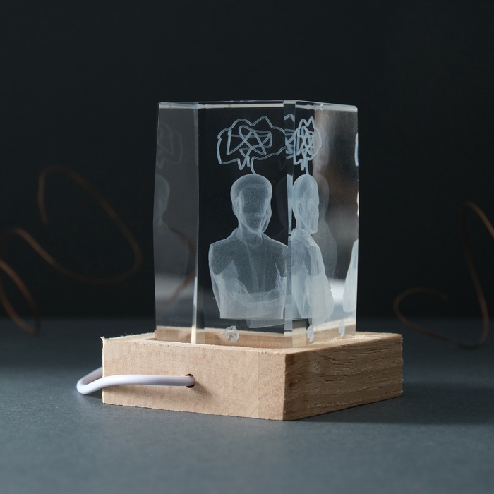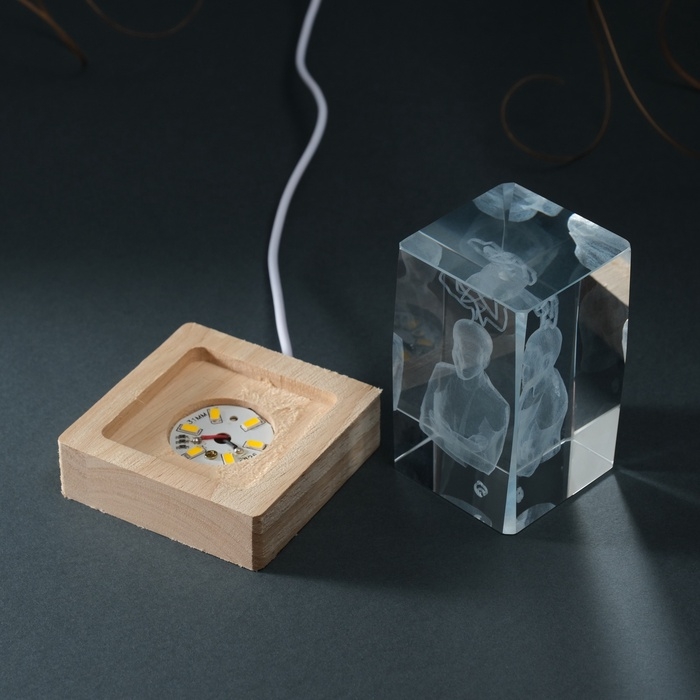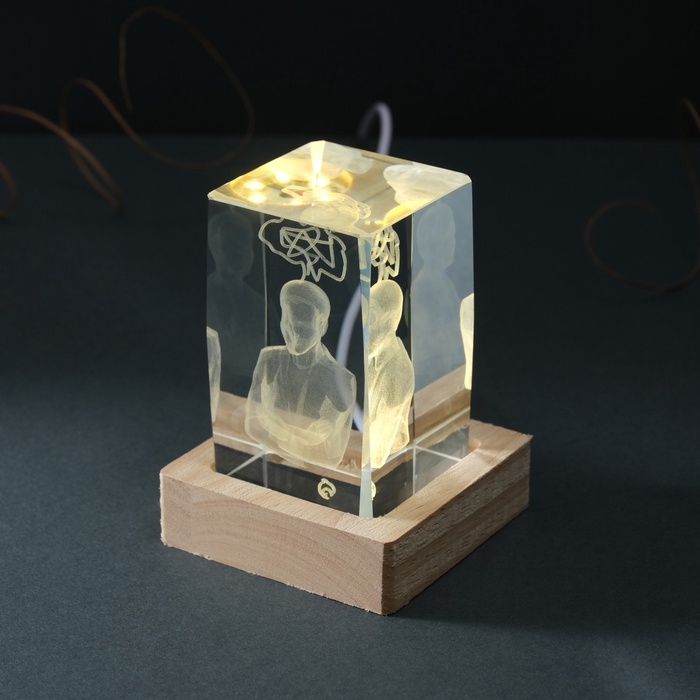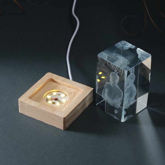 Сувенир стекло подсветка "Прямоугольник. Мыслитель" подставка дерево, USB 7х7х10