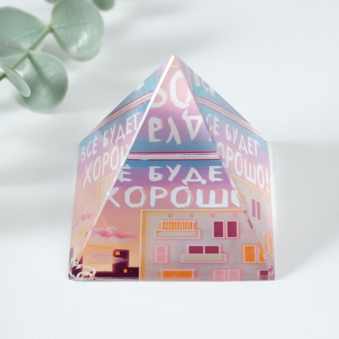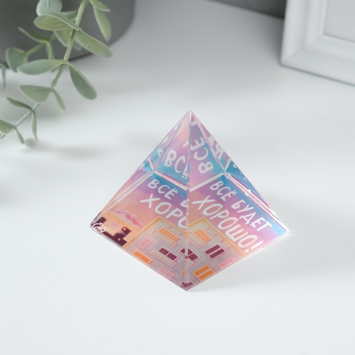Сувенир стекло пирамида "Всё будет хорошо" 6х6х6 см
