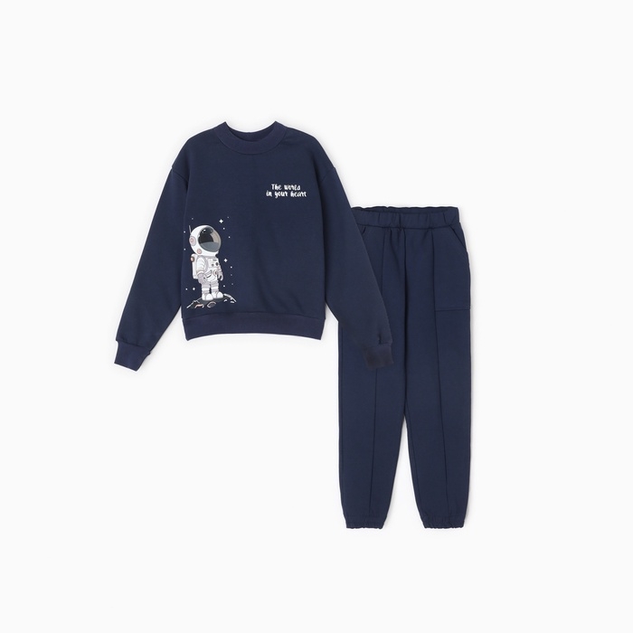 Костюм детский с начёсом (свитшот, брюки) MINAKU: astronaut, цвет синий, рост 140 см
