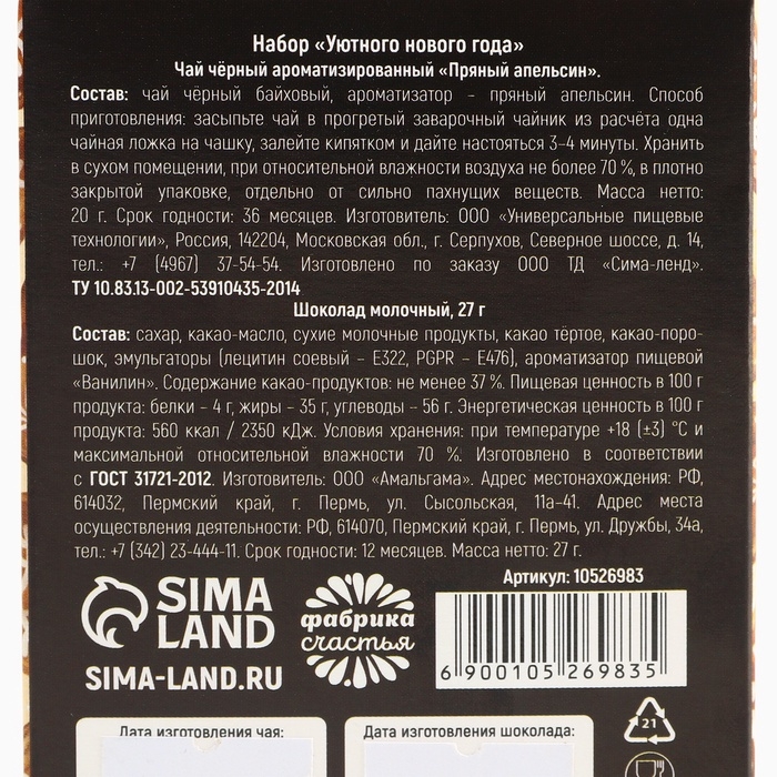 Подарочный набор новогодний «Уютного нового года», чай, шоколад