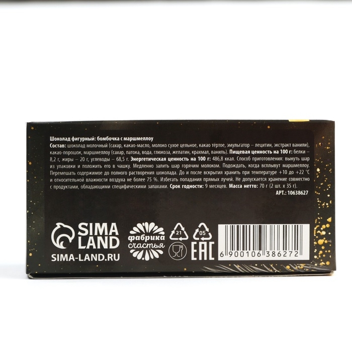 Шоколадная бомбочка с маршмеллоу в коробке «Мечтай» 2 шт х 35 г