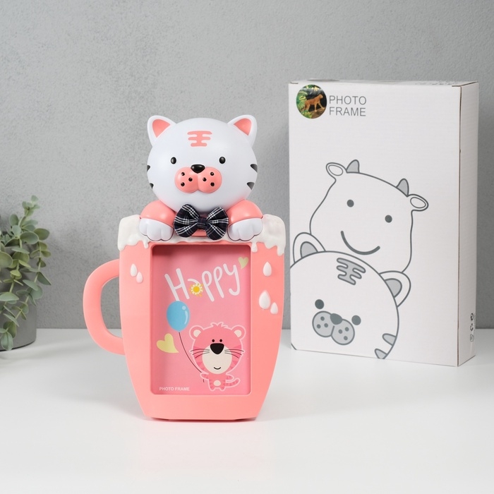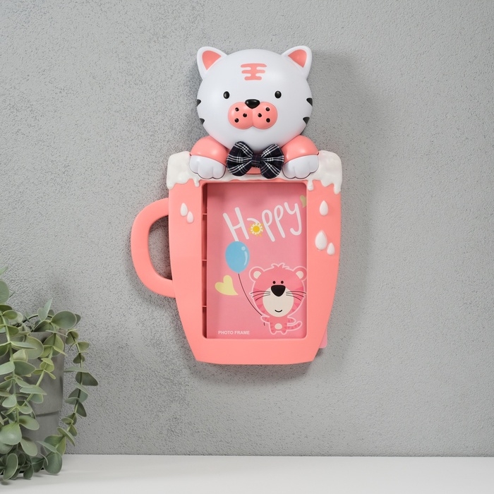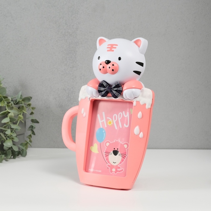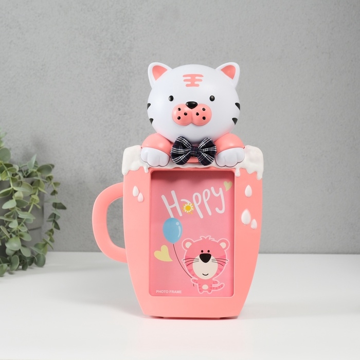 Фоторамка пластик 16х11 см "Тигренок в чашке" розовый 29,5х8х19,5 см