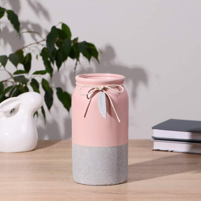 Ваза керамика настольная "Домашняя" бантик с листочком, 9х10х20 см, микс