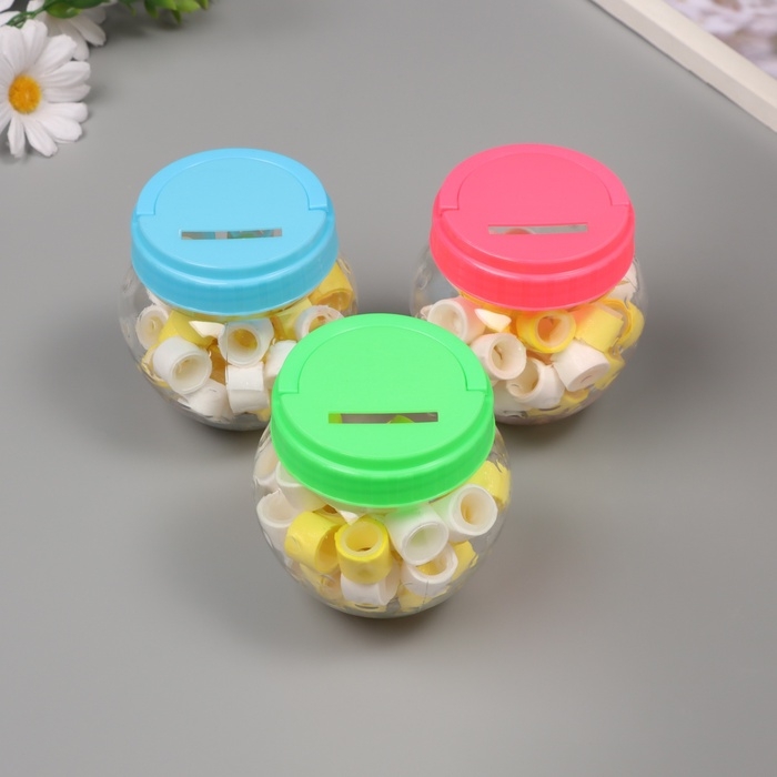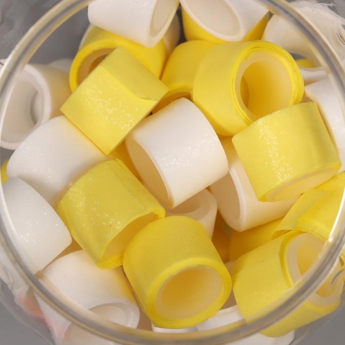 Клейкая лента пластик в банке "Белый и лимонный" н-р 40 шт 1,2 см, дл. 0,9 м 7х7х9 см