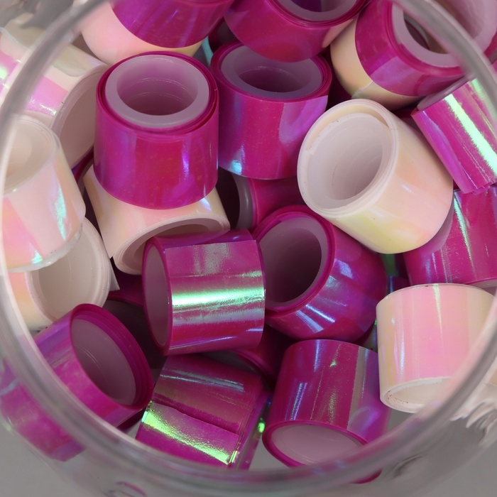 Клейкая лента пластик в банке "Перл. Белый и фуксия" н-р 40 шт 1,2 см, дл.0,9 м 7х7х9 см