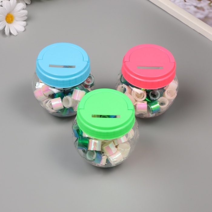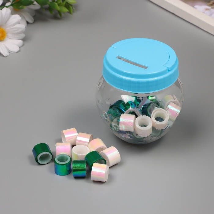 Клейкая лента пластик в банке "Перл. Белый и зелёный" н-р 40 шт 1,2 см, дл.0,9 м 7х7х9 см