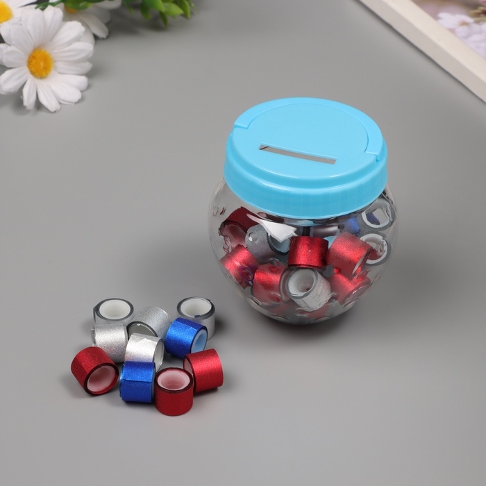 Клейкая лента пластик в банке "Глори. Триколор" н-р 40 шт 1,2 см, дл.0,9 м 7х7х9 см