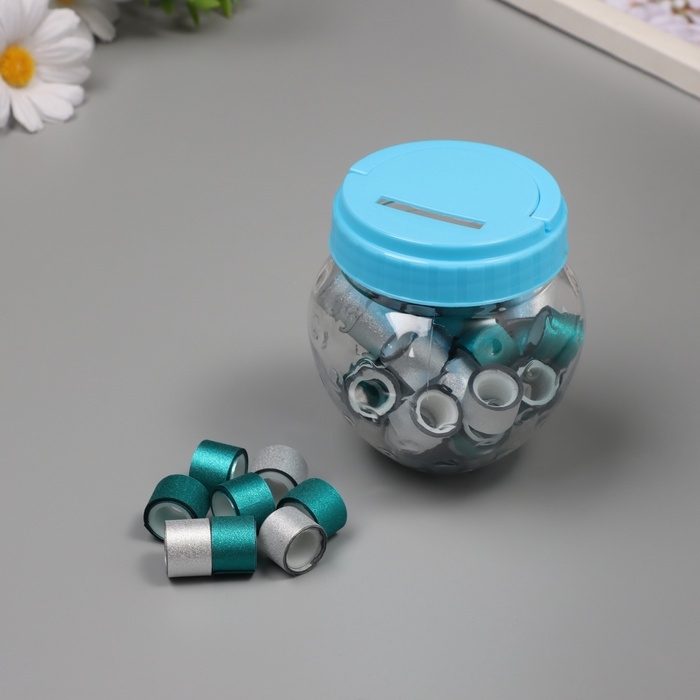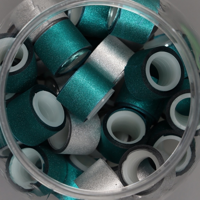 Клейкая лента пластик в банке "Глори. Серебро, голубой" н-р 40 шт 1,2 см, дл.0,9м 7х7х9 см