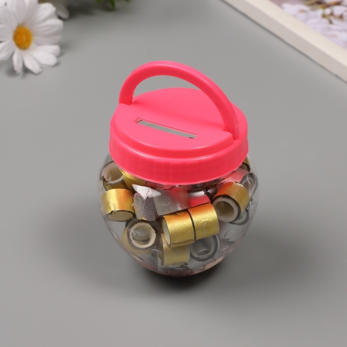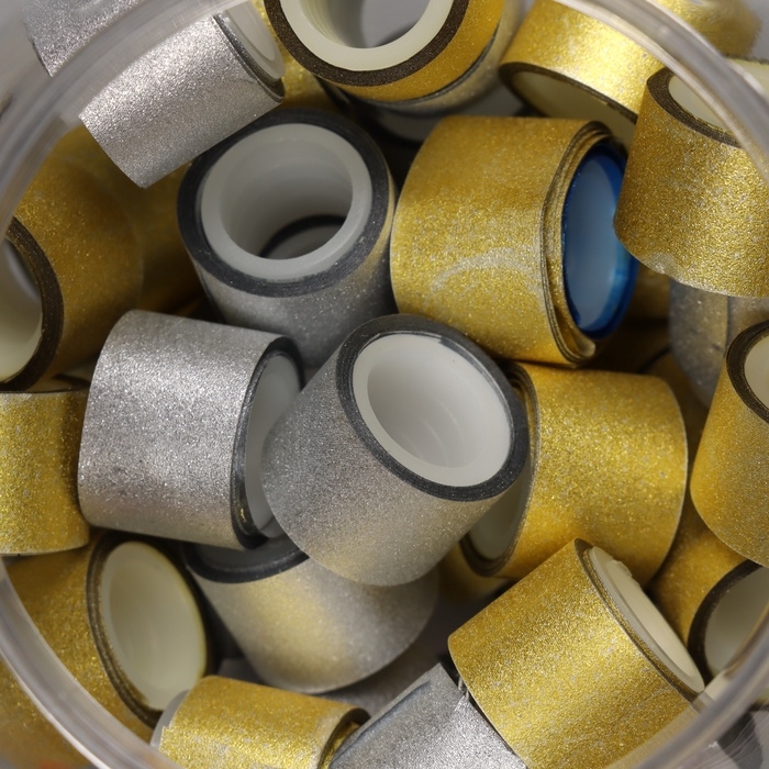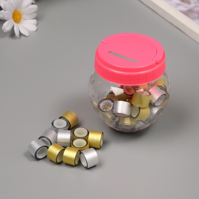 Клейкая лента пластик в банке "Глори. Золото, серебро" н-р 40 шт 1,2 см, дл.0,9 м 7х7х9 см