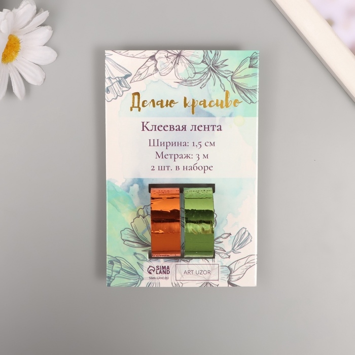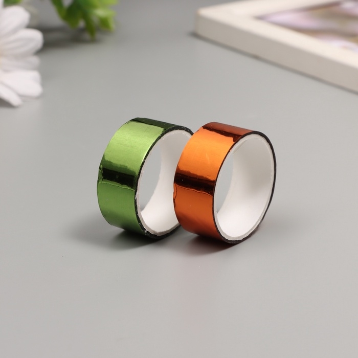 Клейкая лента декоративная пластик "Металлик. Зелёный, оранж" н-р 2 шт 1,5 см, дл. 3 м