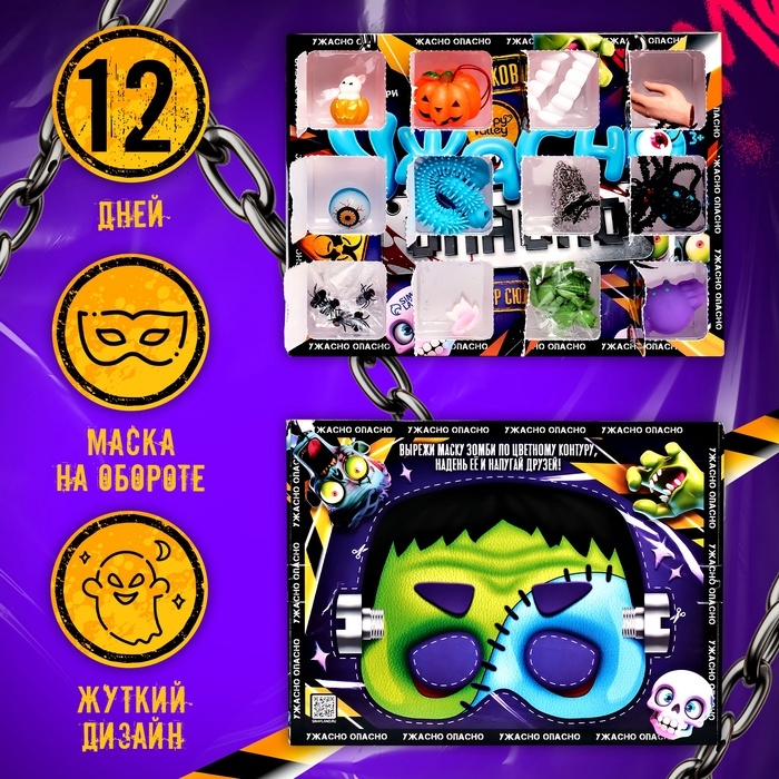 Представьте, что каждый день декабря становится маленьким праздником! Адвент-календарь «Ужасно опасно» — это не просто набор сюрпризов, а целое приключение. За каждой дверцей вас ждут 12 жутко классных подарков, которые подарят море положительных эмоций. Внутри вы найдете мистические подвески, забавные игрушки-антистресс, необычные аксессуары и многое другое. Каждый день будет особенным, ведь сюрпризы так тщательно подобраны, чтобы удивлять и радовать.