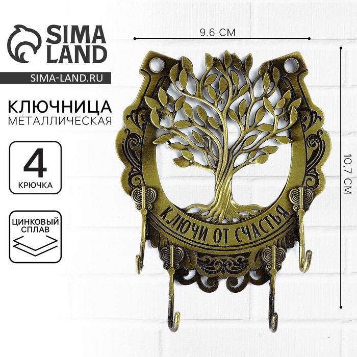 Ключница настенная «Ключи от счастья», дерево, 9.6 х 10.7 см