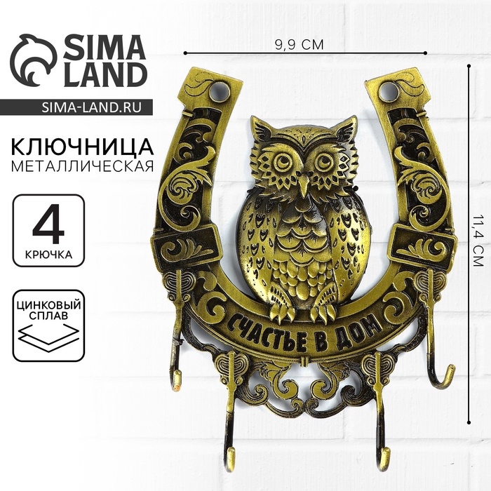 Ключница настенная «Счастье в дом», сова, 9.9 х 11.4 см