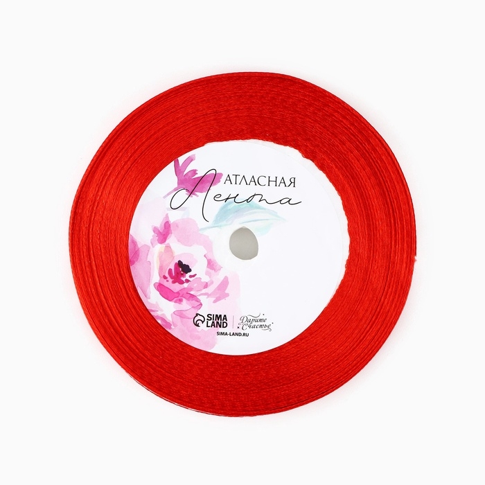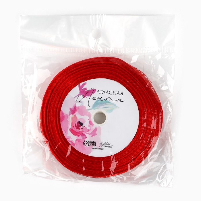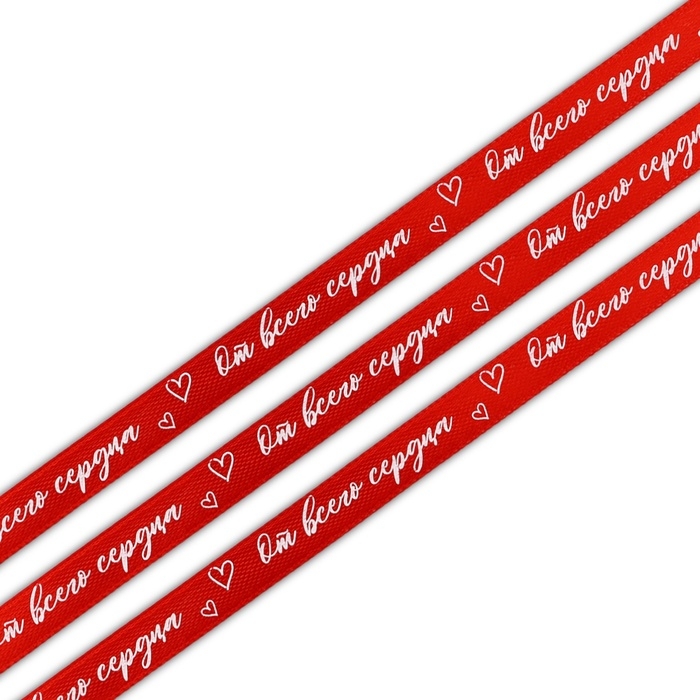 Лента атласная декоративная «От всего сердца», красная, 1 см х 22.5 м