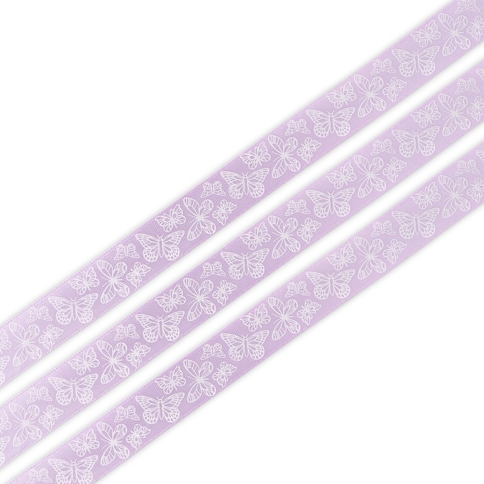 Лента атласная «Бабочки», сиреневая, 2 см х 5 м