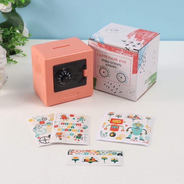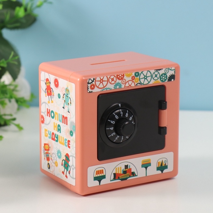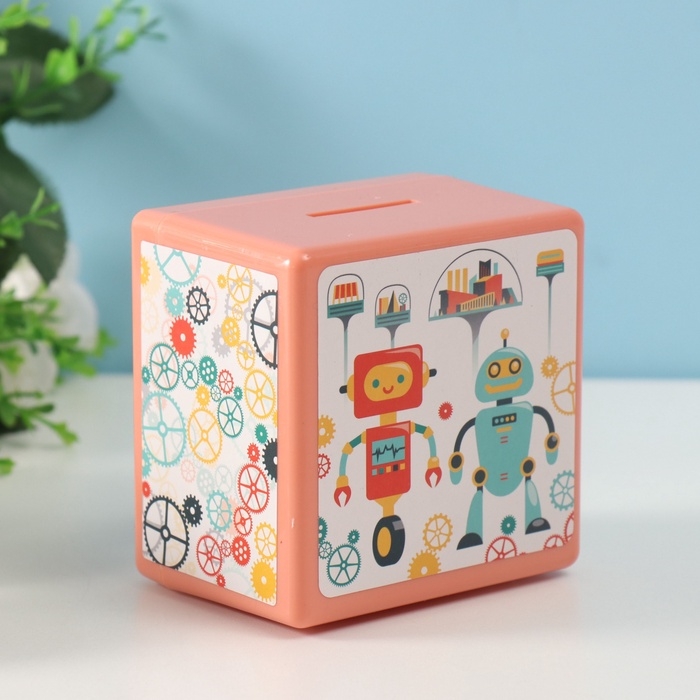 Копилка пластик "Сейф. Роботы" 8,5х6х8,5см
