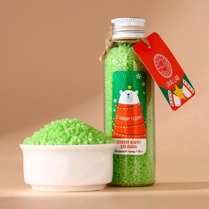 Жемчуг для ванны URAL LAB «Мишка», 85 г, аромат ягодный пунш, Новый Год