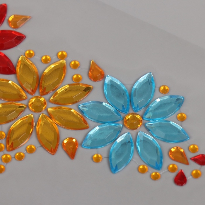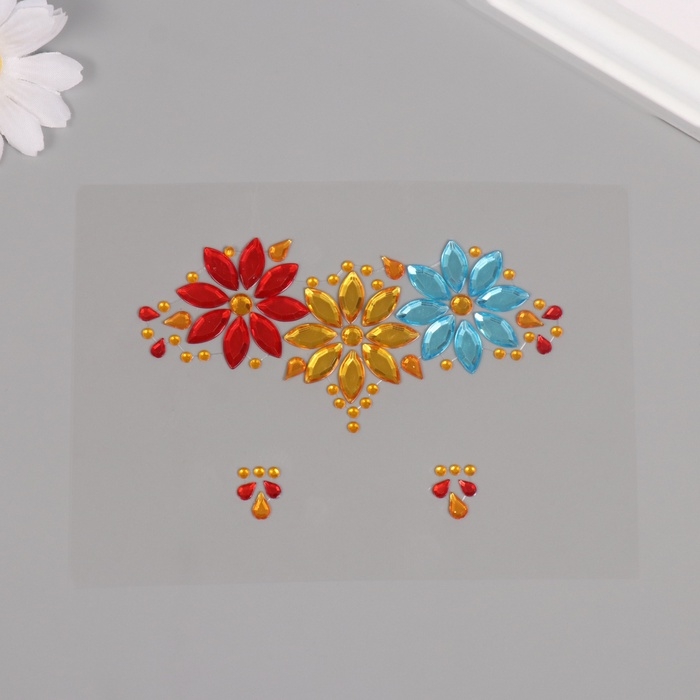 Наклейка пластик стразы на лицо "Три цветка" яркие цвета 14,5х16 см