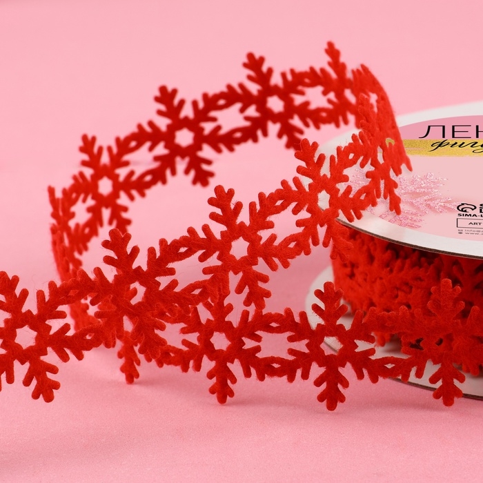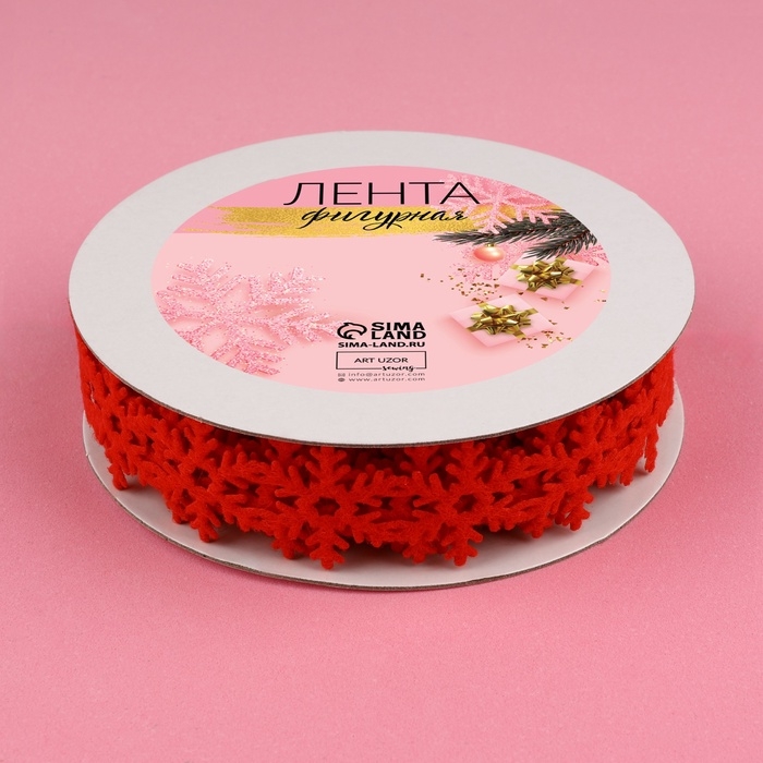 Лента декоративная фигурная «Снежинки», 25 мм, 9 ± 0,5 м, цвет красный