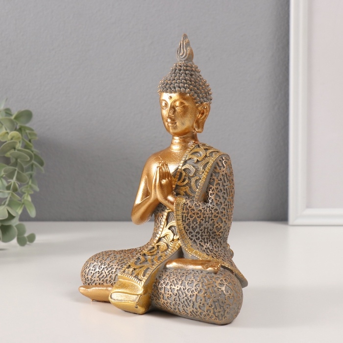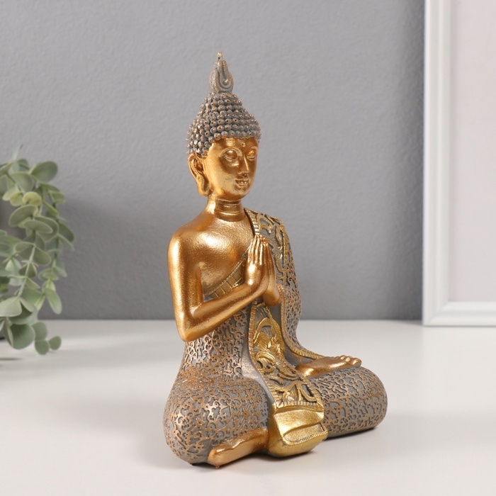 Сувенир полистоун "Будда - Мудра Намаскара" золотой 9,5х13,5х19,5 см