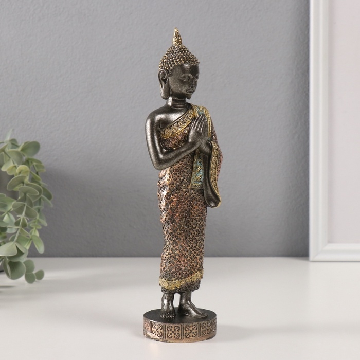 Сувенир полистоун "Будда - Анджали-мудра" серый 6х7х23,5 см
