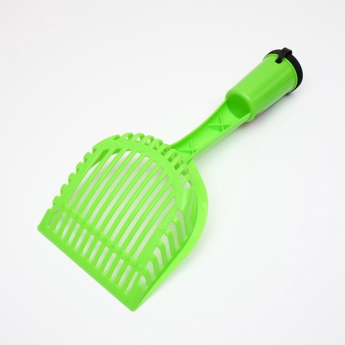 Совок для уборки за кошкой с контейнером для пакетов, размер 26 х 6 х 5 см, зелёный – это практичное решение для владельцев домашних животных, позволяющее легко и быстро убирать за любимцем. Удобный и функциональный дизайн делает этот совок незаменимым помощником в поддержании чистоты в вашем доме.