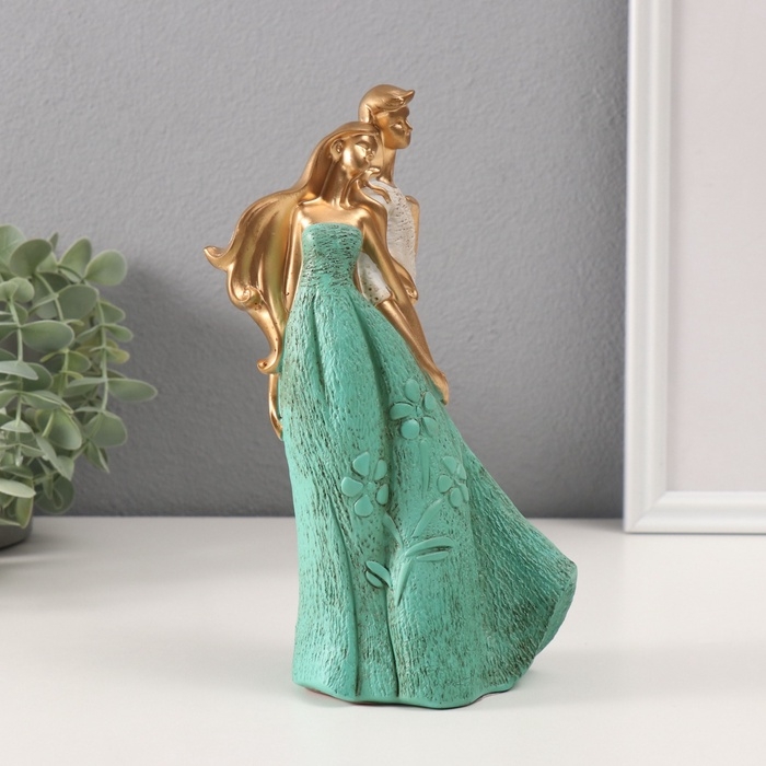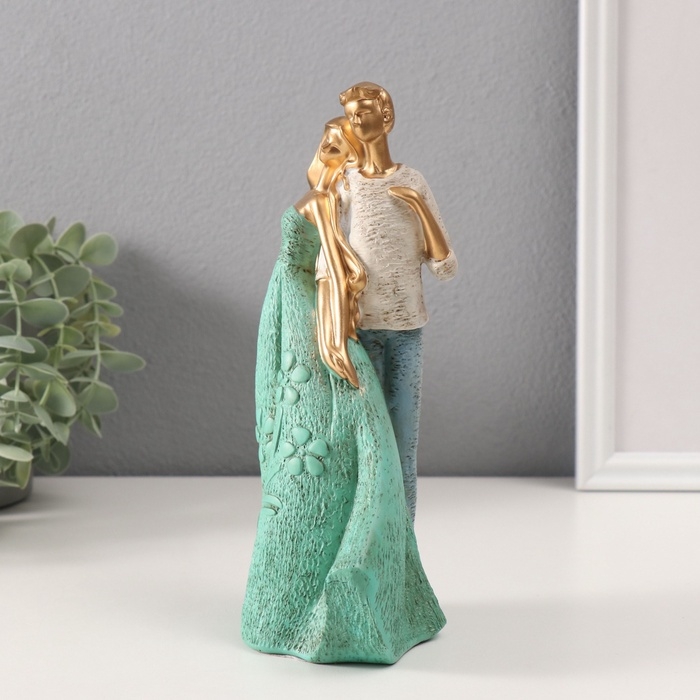 Сувенир полистоун "Пара держится за руки" бежево-зелёный 8х10х22 см