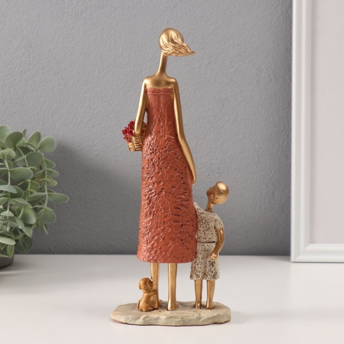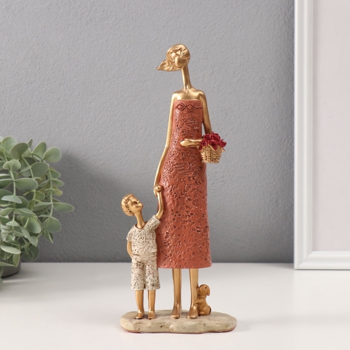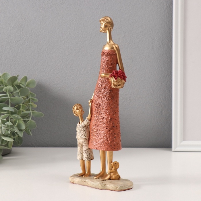 Сувенир полистоун "Мама с сыном с корзинкой цветов" красно-бордовый 5х9,8х24 см
