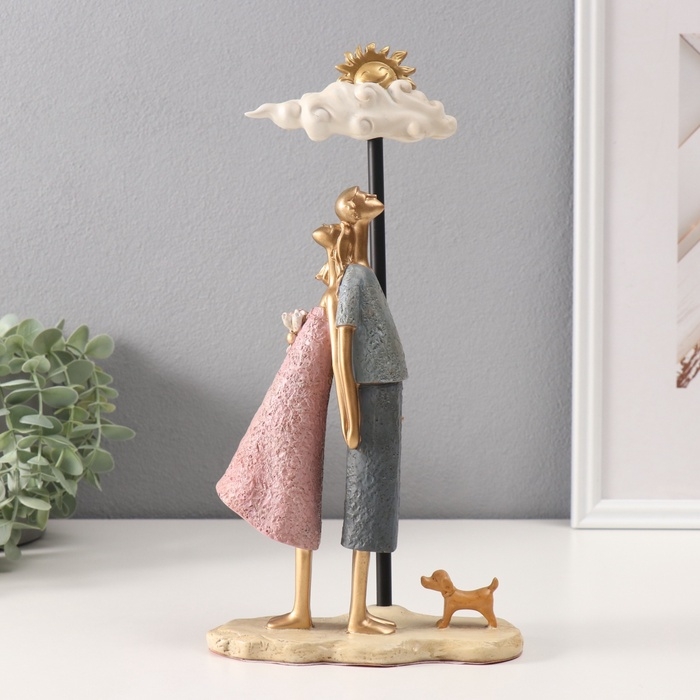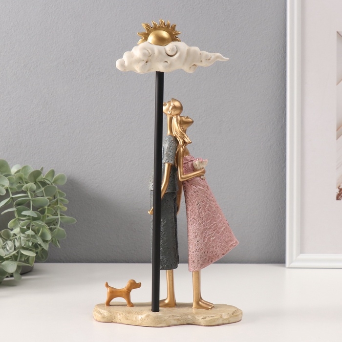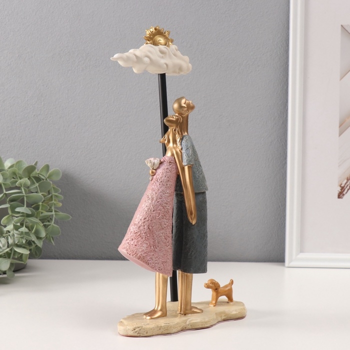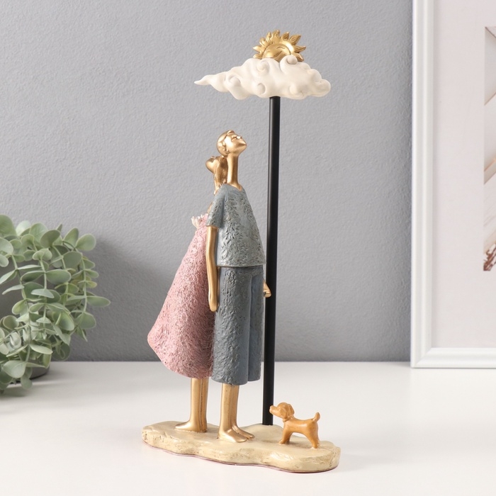 Сувенир полистоун "Пара на скамейке с тучкой и солнцем" розово-голубой 6х16х30 см