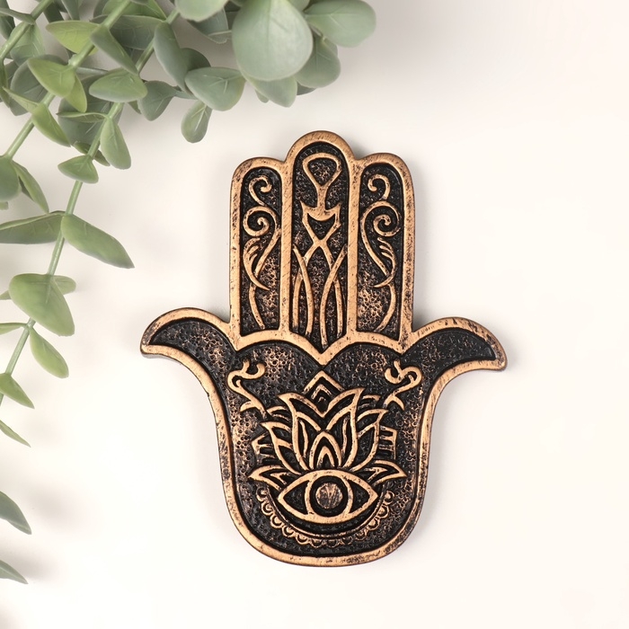 Подставка под благовония полистоун "Рука Фатимы" бронза 9,2x11x1 см