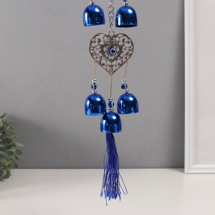 Музыка ветра металл от сглаза "Ажурное сердце" 5 колокольчиков 5,5х45 см