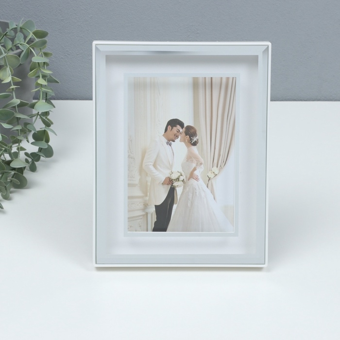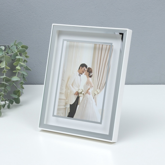 Фоторамка пластик на 1 фото 13х18 см "Лаконичный стиль" серебро бумага тиснение 18х2х23 см