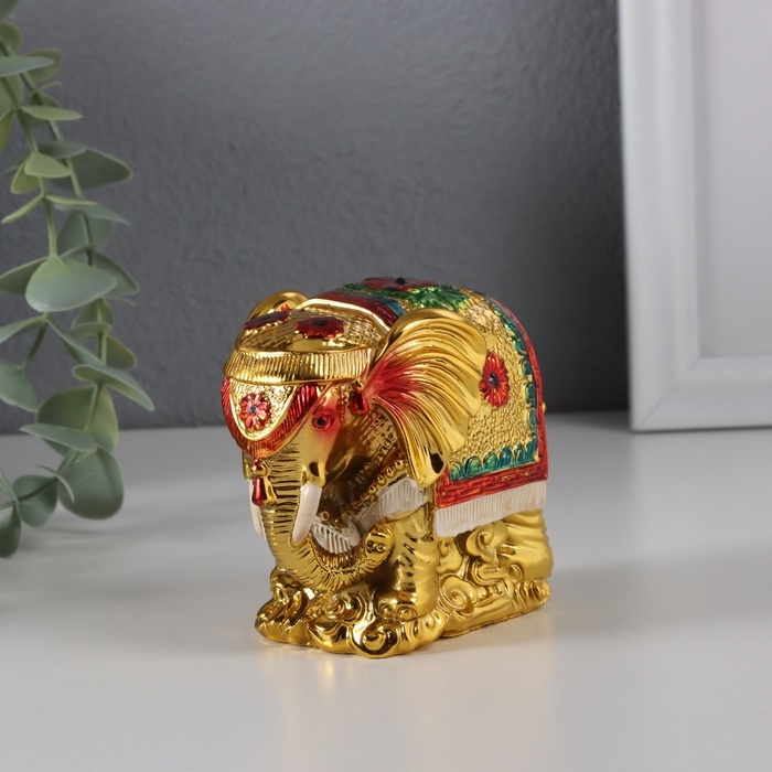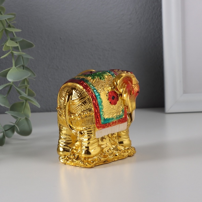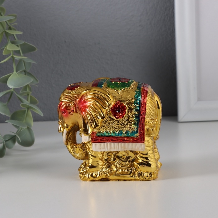 Нэцке полистоун "Индийский слон на золотых слитках" золото 4,6х8,8х8 см