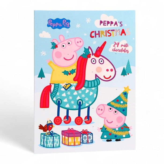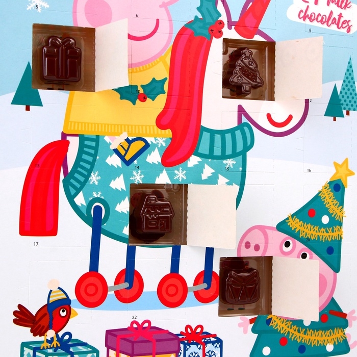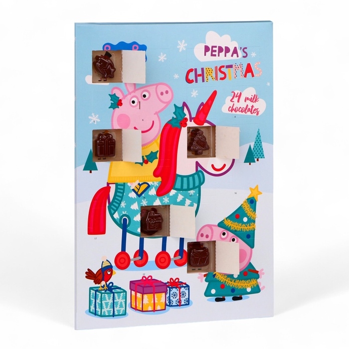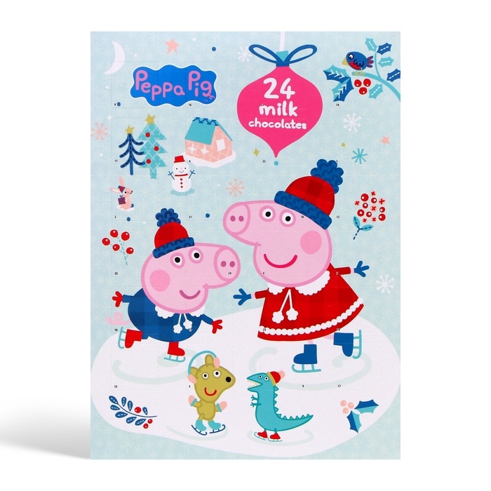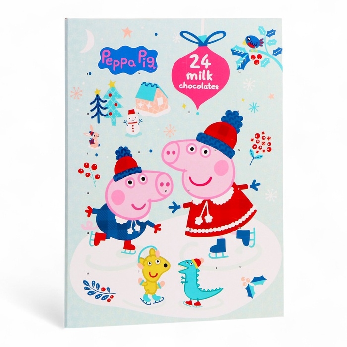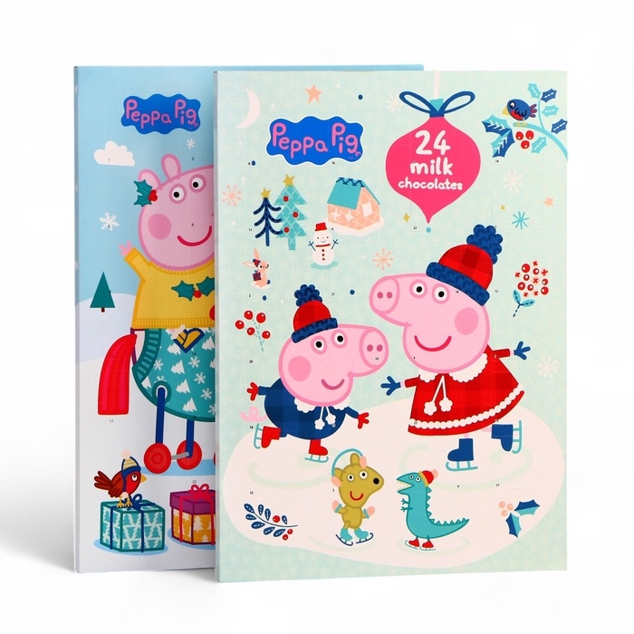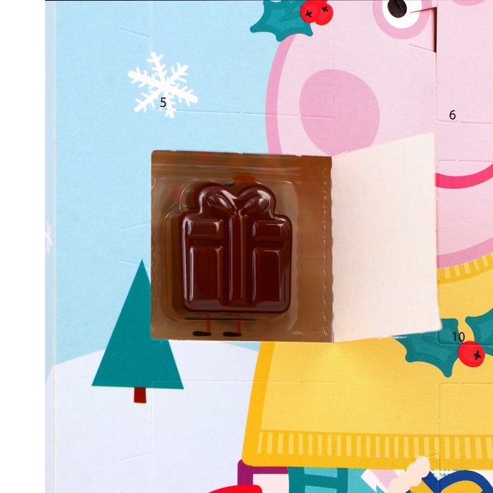 В окошке вас ждёт особая шоколадная фигурка с изображениями любимых героев из мультфильма "Свинка Пеппа". Нежный шоколад и оригинальный дизайн фигурок создадут праздничное настроение и добавят яркие эмоции. Открывая окошко, дети смогут не только насладиться вкусным угощением, но и создать свои собственные новогодние традиции.