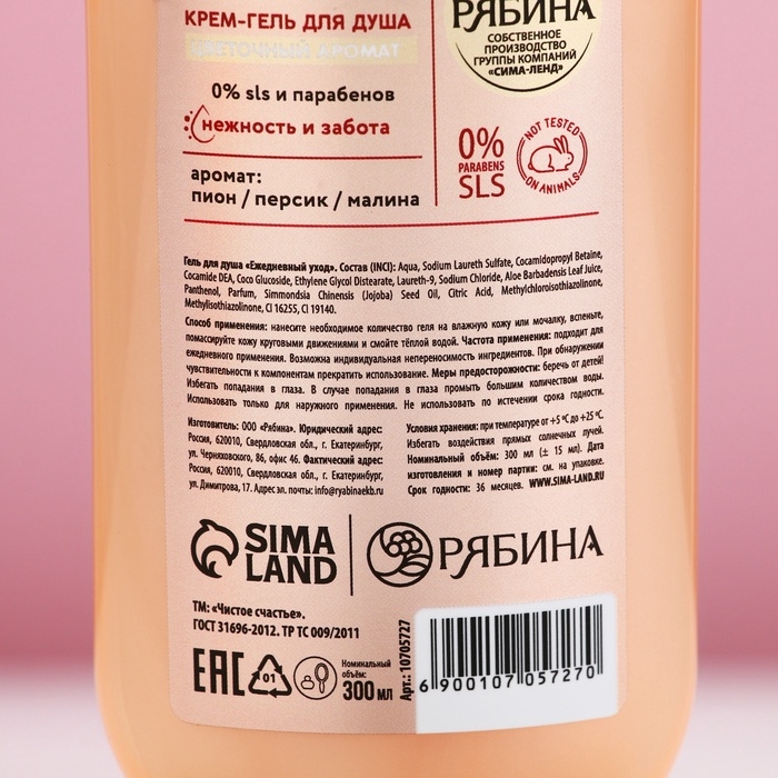 Гель для душа ЧИСТОЕ СЧАСТЬЕ «Мягкое увлажнение», 300 мл, аромат цветов