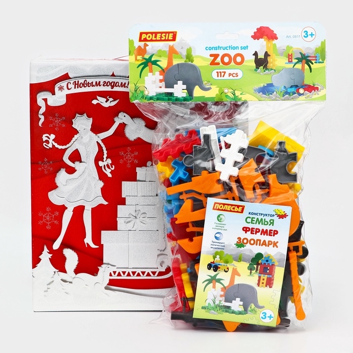 Детский новогодний подарок — это идеальное сочетание сладостей и увлекательной игры, которое подарит вашему ребенку радость и множество положительных эмоций! В этом замечательном наборе вы найдете 1000 г конфет, которые порадуют всех сладкоежек, а также конструктор "Зоопарк" с 117 элементами, который развивает творческие способности и фантазию.