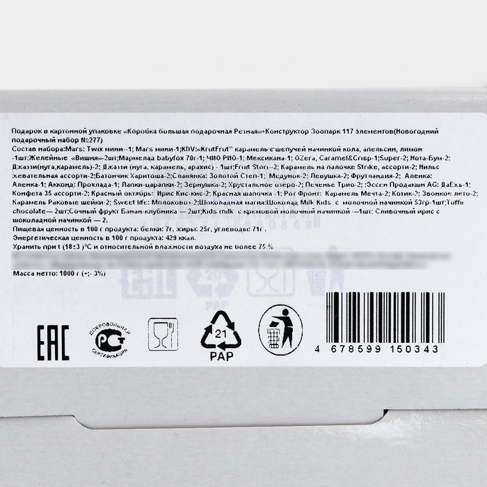 "Коробка большая подарочная "Резная". Набор конфет 1000гр + Конструктор Полесье Зоопарк 117 элементо