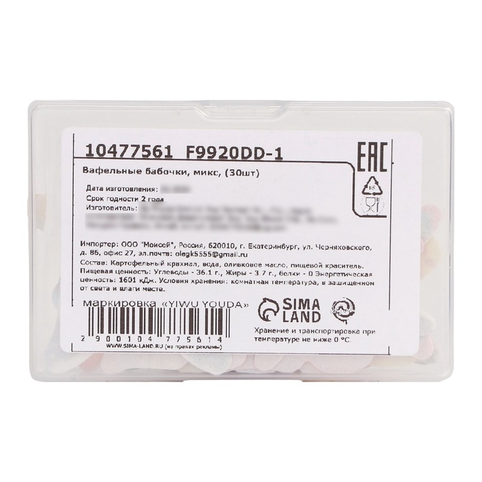 Вафельные бабочки для декора капкейков, торта, микс, 30 шт