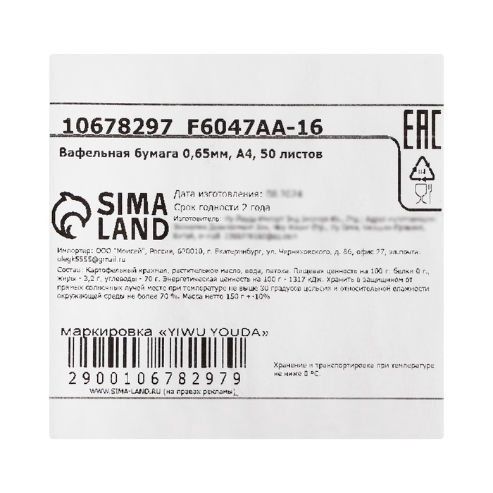 Вафельная бумага толщиной 0,65 мм формата A4 — это идеальный материал для творчества и кулинарных шедевров. Упакованная по 50 листов, она идеально подходит для использования в различных проектах, от кондитерских изделий до художественных работ.