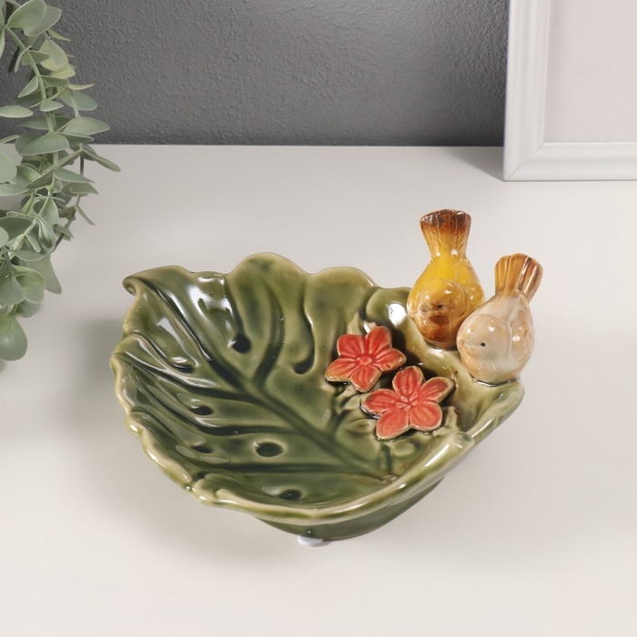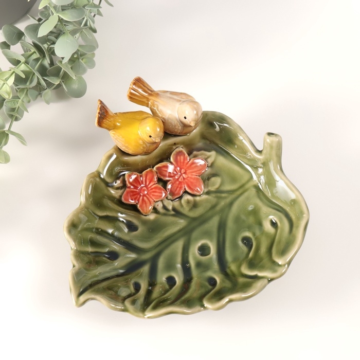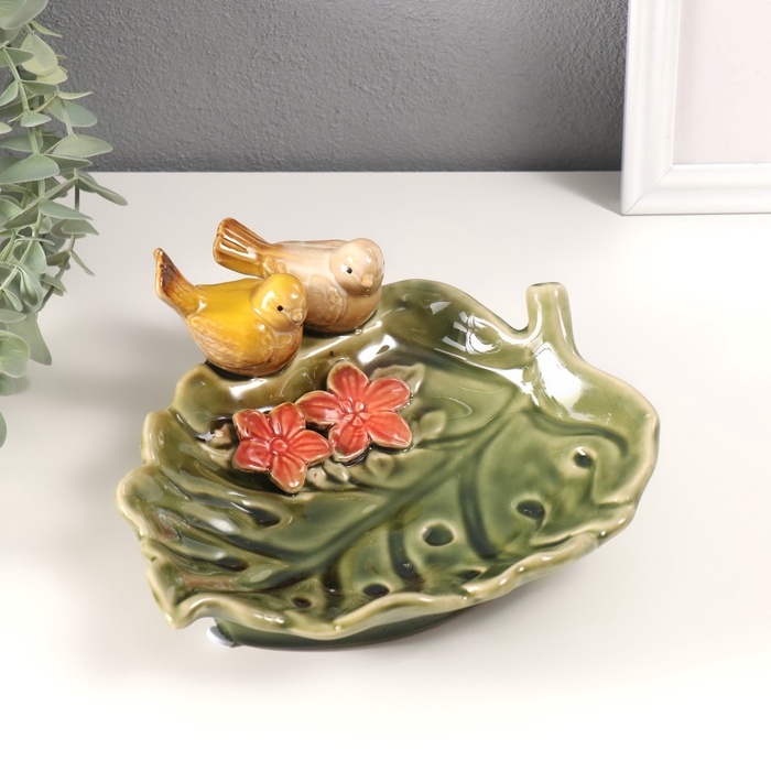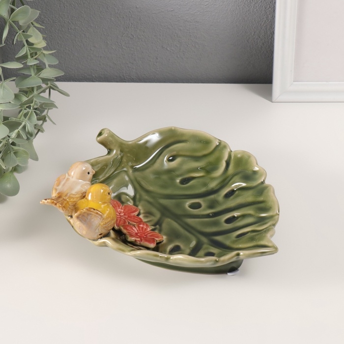 Сувенир керамика подставка "Зеленый лист с двумя птичками" 25х19х8 см