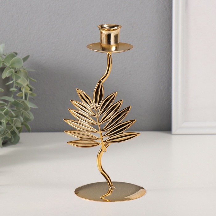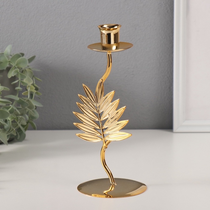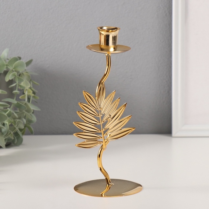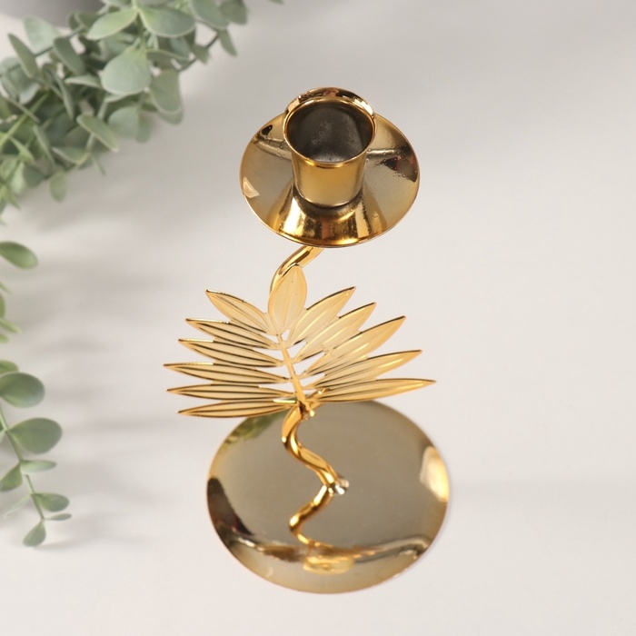 Подсвечник металл на 1 свечу "Лист папоротника" d-2 см 9х9х21 см