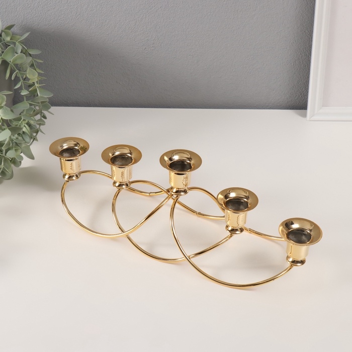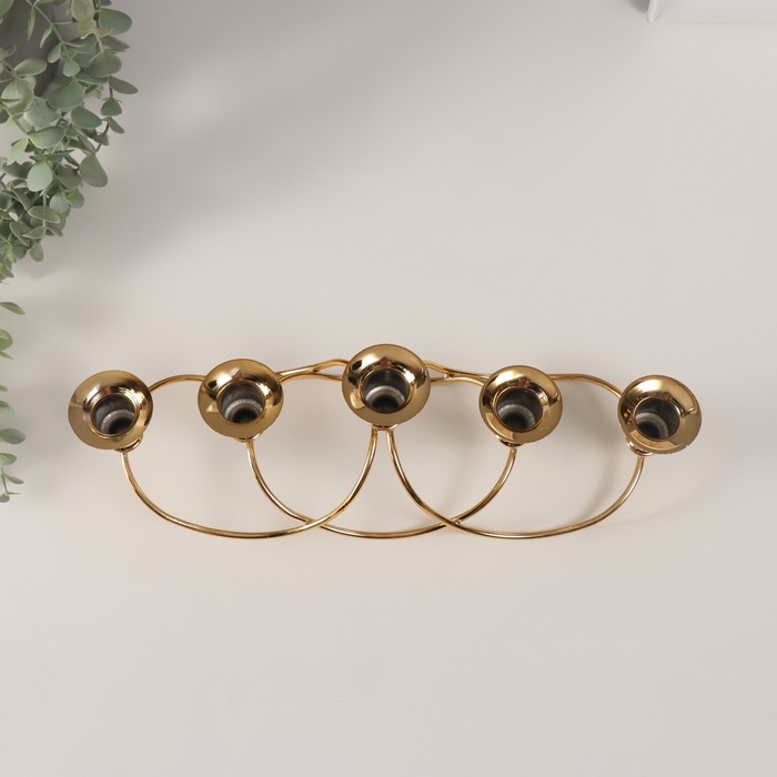 Подсвечник металл на 5 свечей "Волны" золото d-2 см 10,5х37х11 см