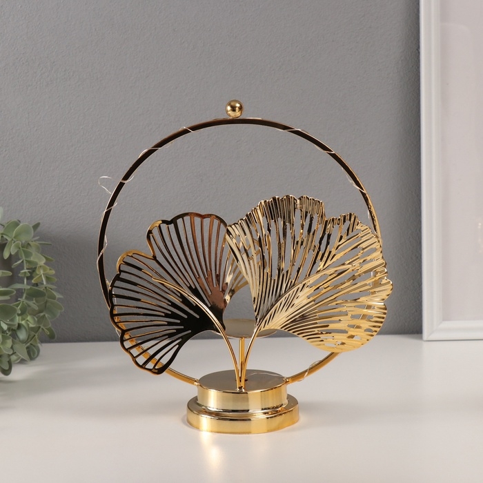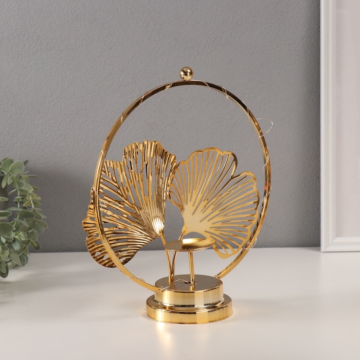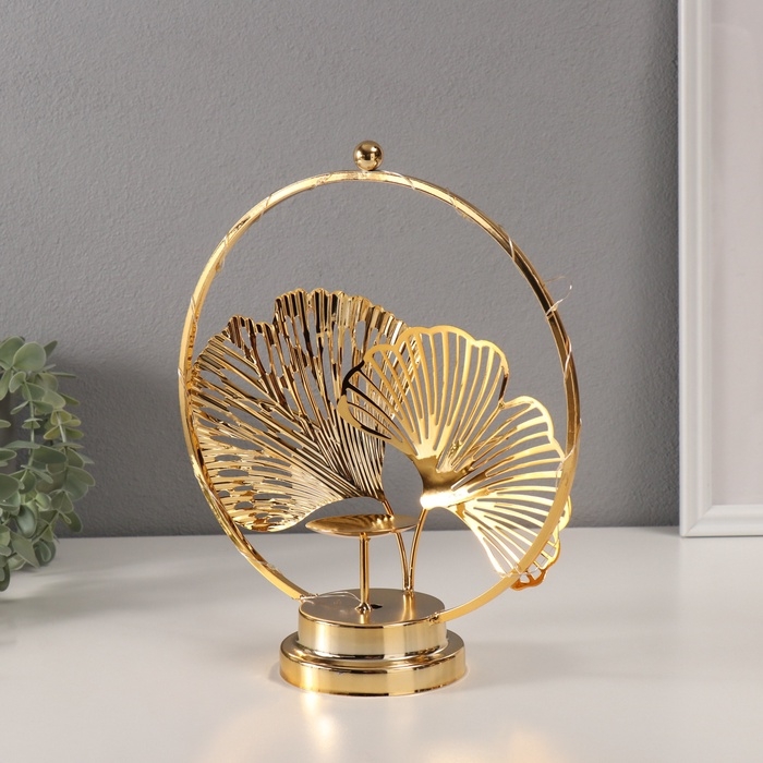Подсвечник на 1 свечу "Листья Гинкго" с подсветкой, d-6 см 9,5х23,5х27 см
