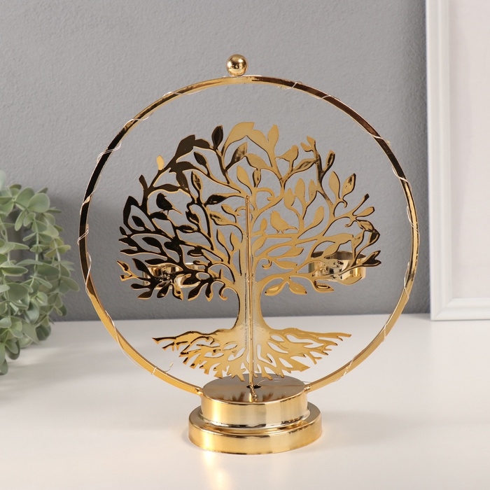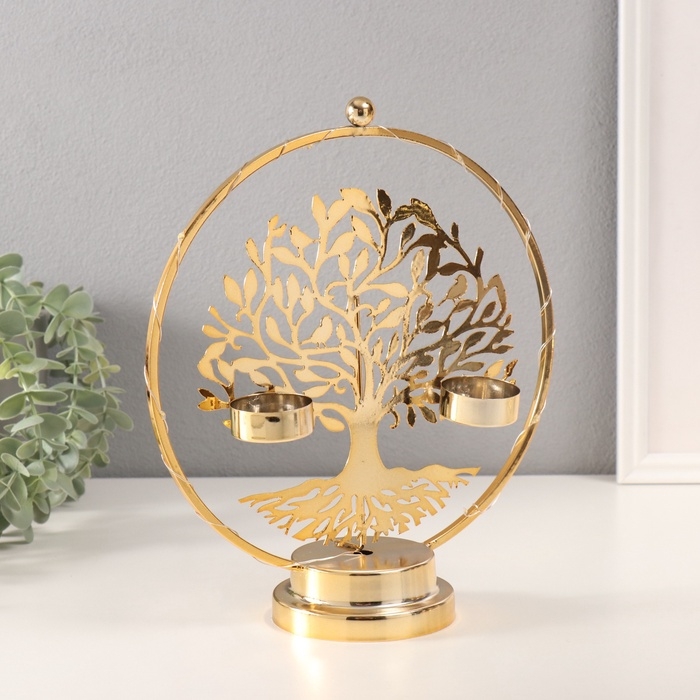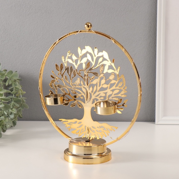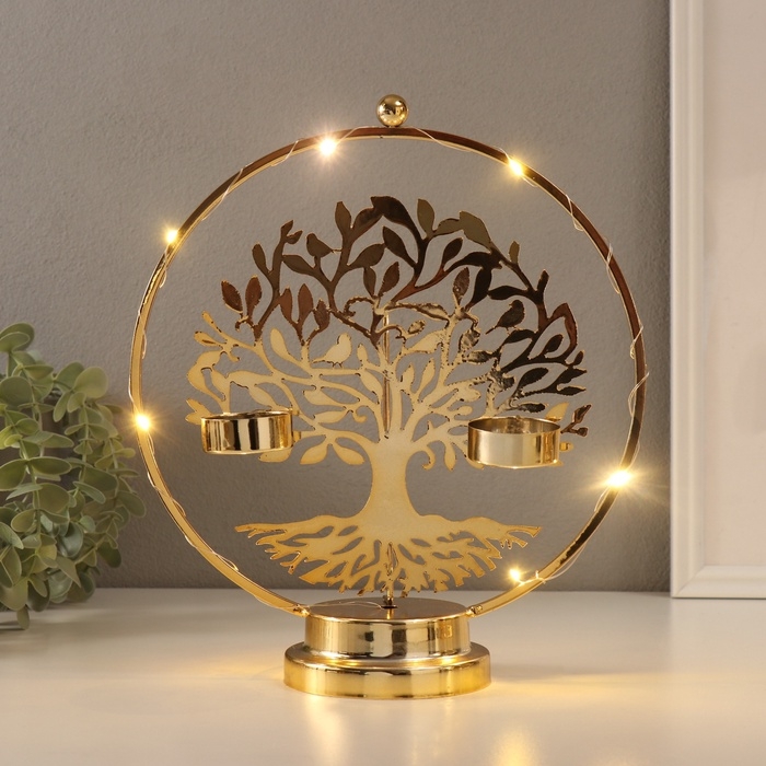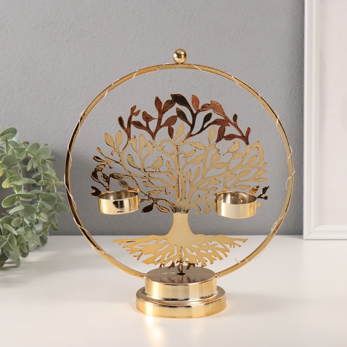 Подсвечник на 2 свечи "Дерево с птичками" с подсветкой, d-3,5 см 9,5х23,5х27 см