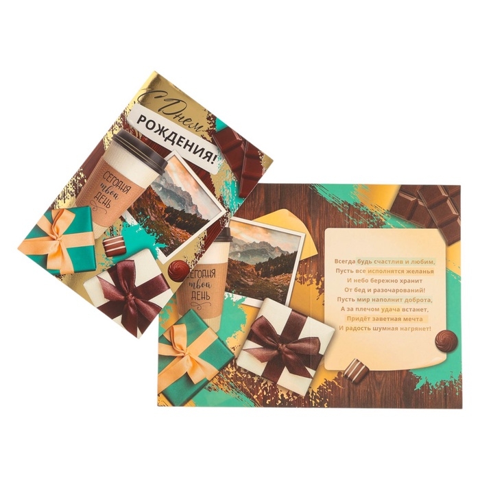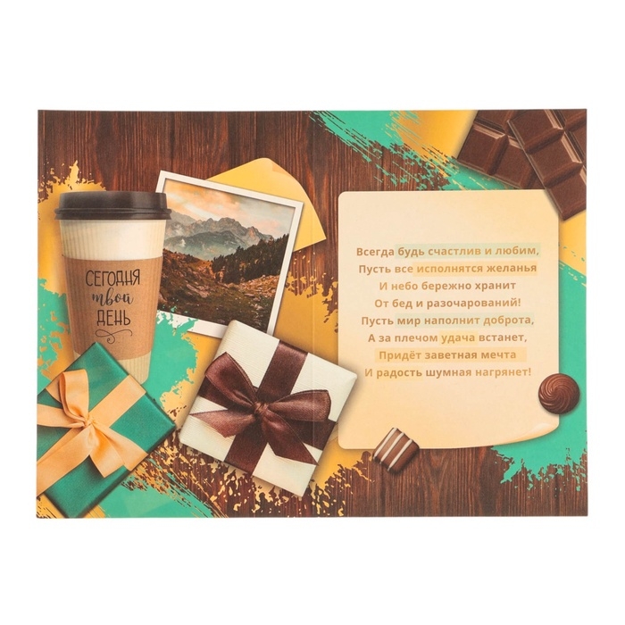 Открытка "С Днём Рождения! Сегодня твой день!" тиснение, 12 х 18 см