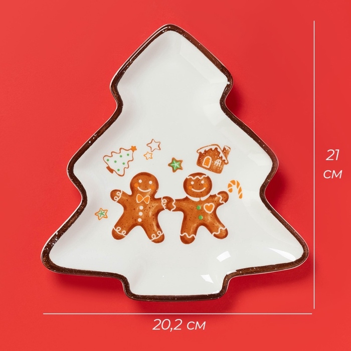 Тарелка новогодняя Доляна «Имбирные человечки», 21×20,2 см