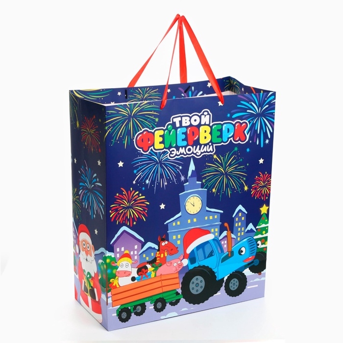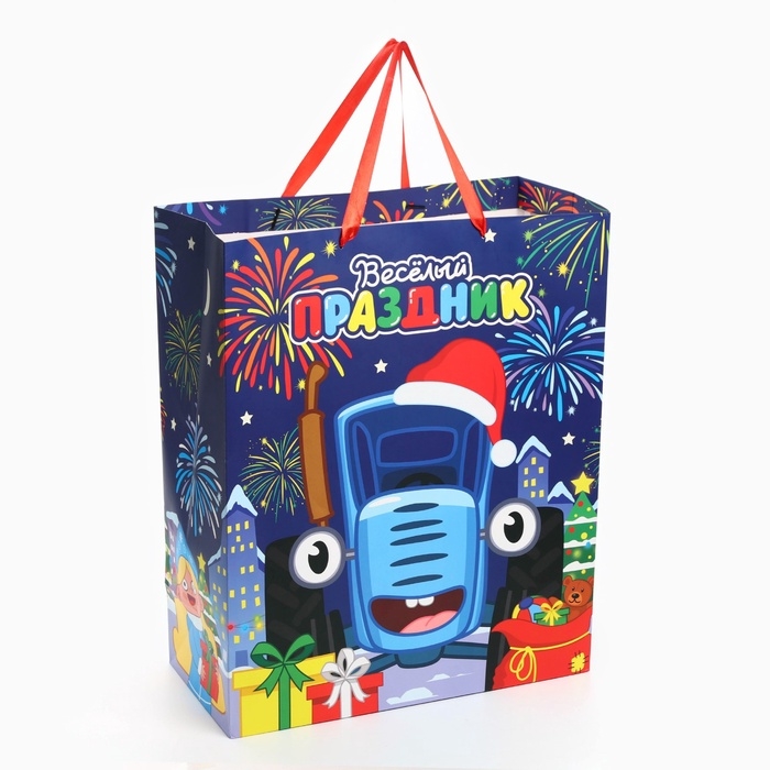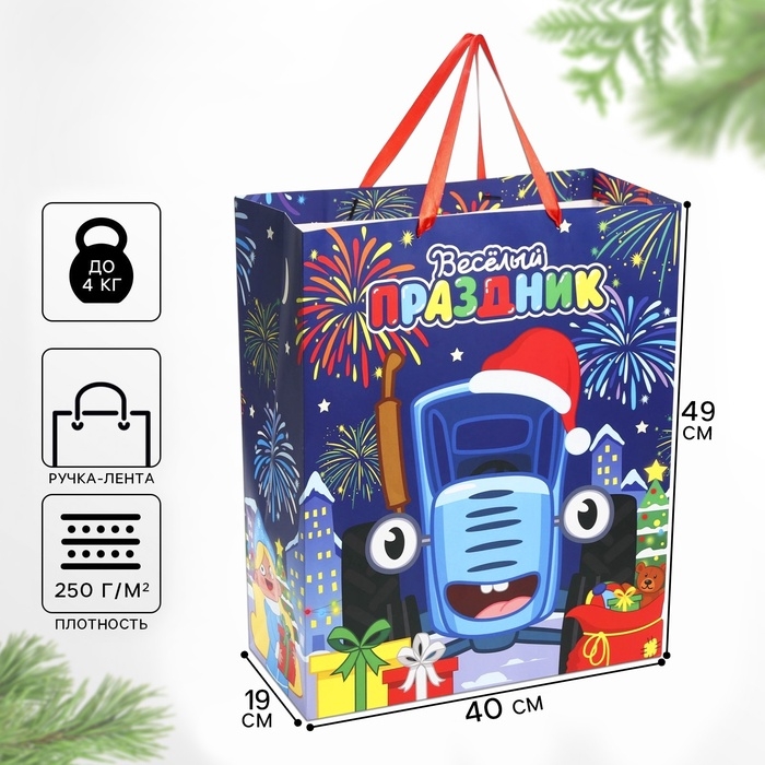Пакет подарочный новогодний, 40 х 49 х 19 см, Синий трактор
