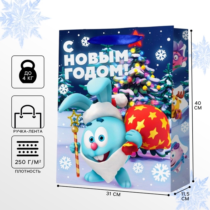 Пакет подарочный новогодний, 31 х 40 х 11.5 см, Смешарики