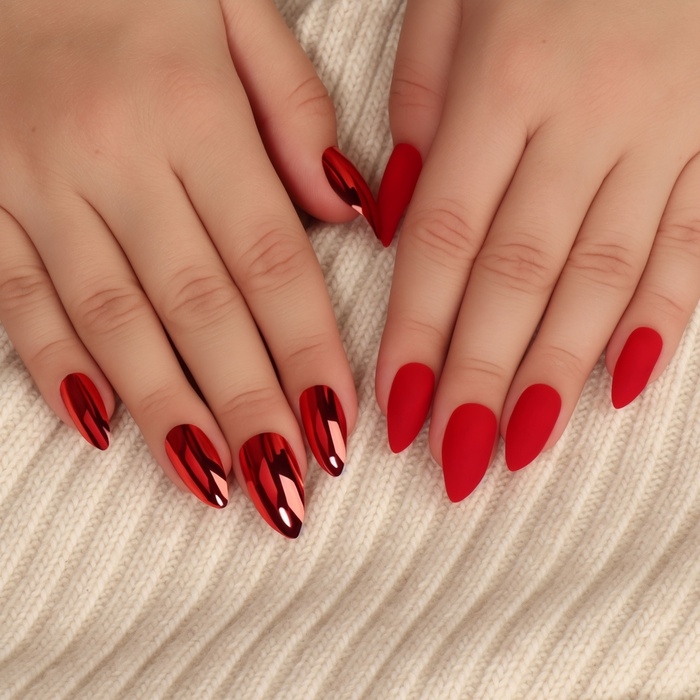 Накладные ногти, 12 шт, с клеевыми пластинами, форма миндаль, красные