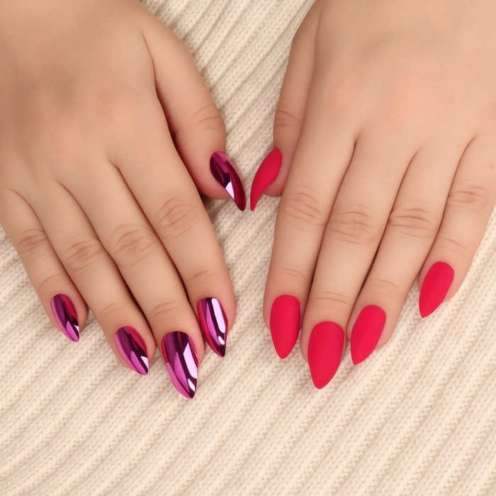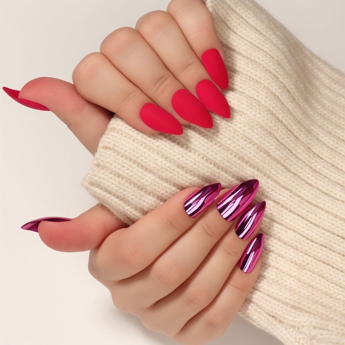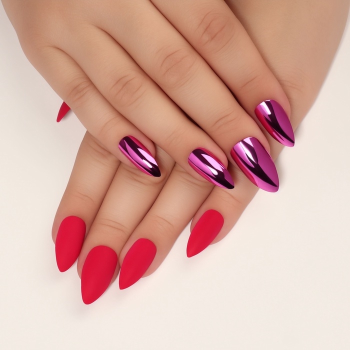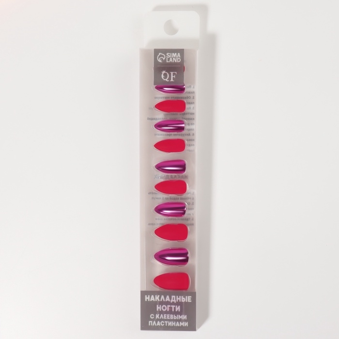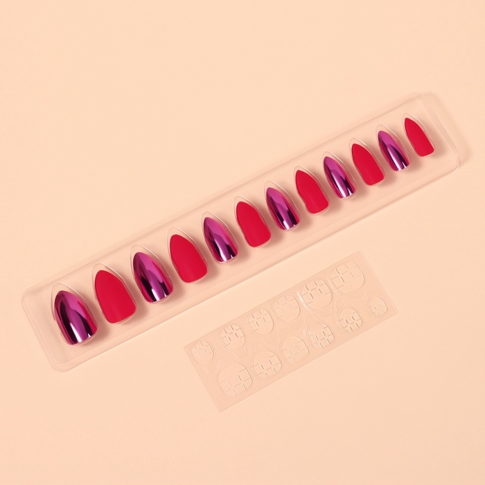 Накладные ногти, 12 шт, с клеевыми пластинами, форма миндаль, матовые/хромированные, красные, розовые